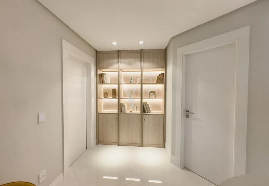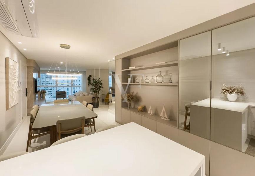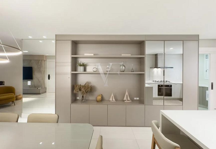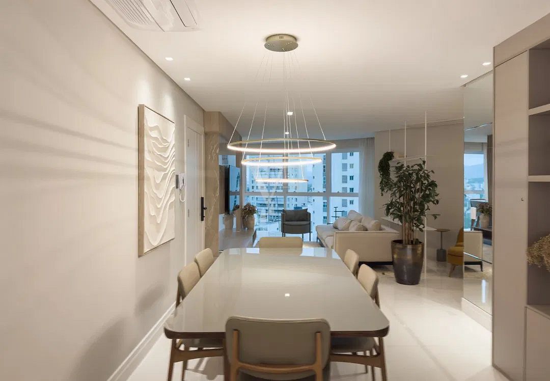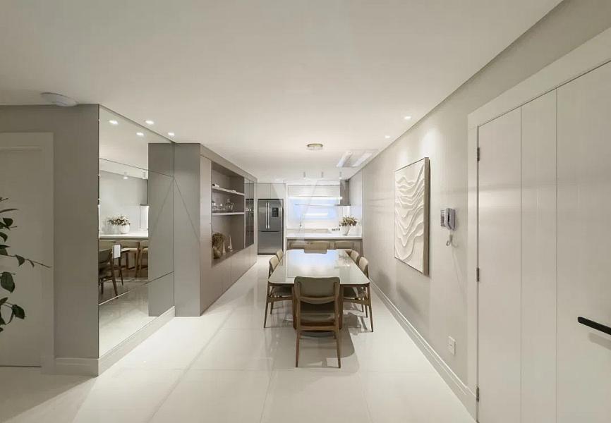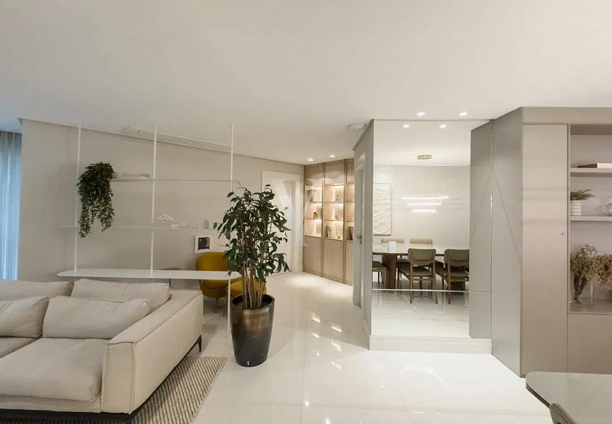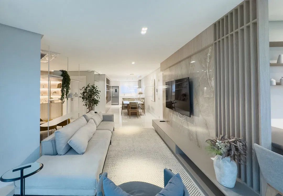 Com 138,64 m² de área privativa e 256,85 m² de área total, o Apartamento 1801 apresenta planta inteligente e distribuição equilibrada dos ambientes, privilegiando amplitude, luminosidade natural e integração.