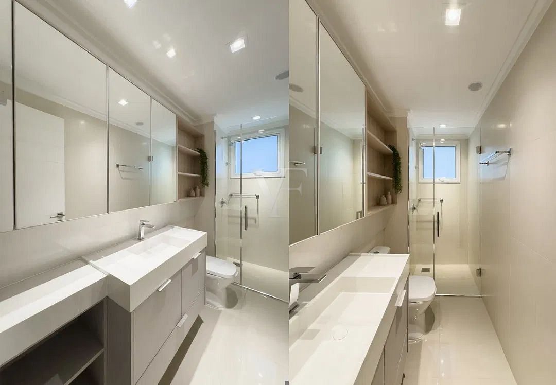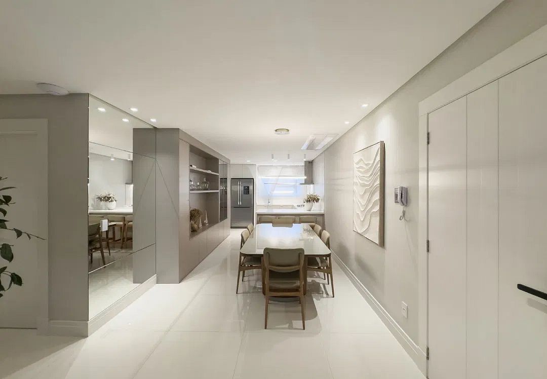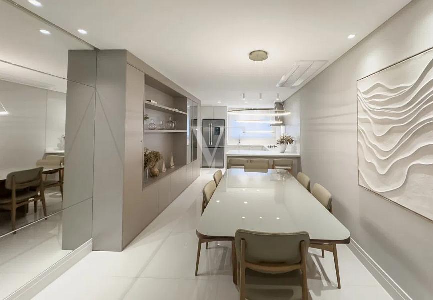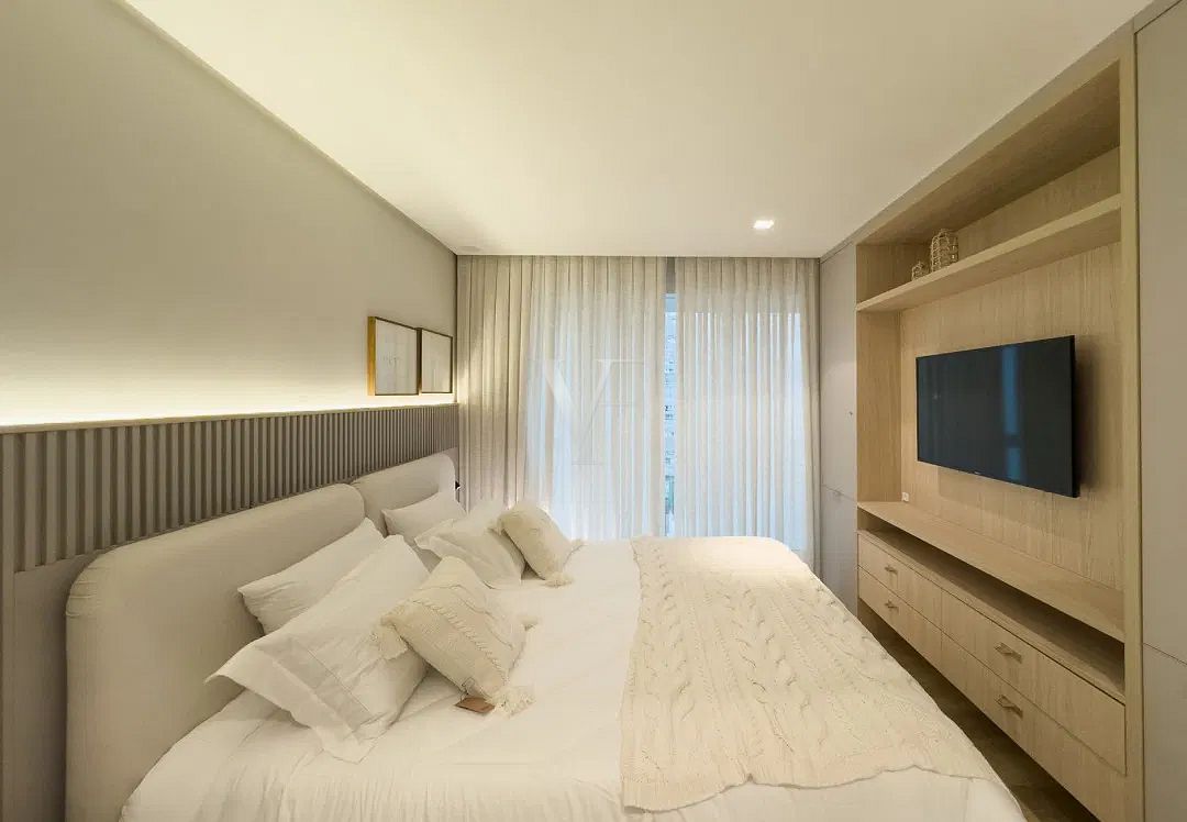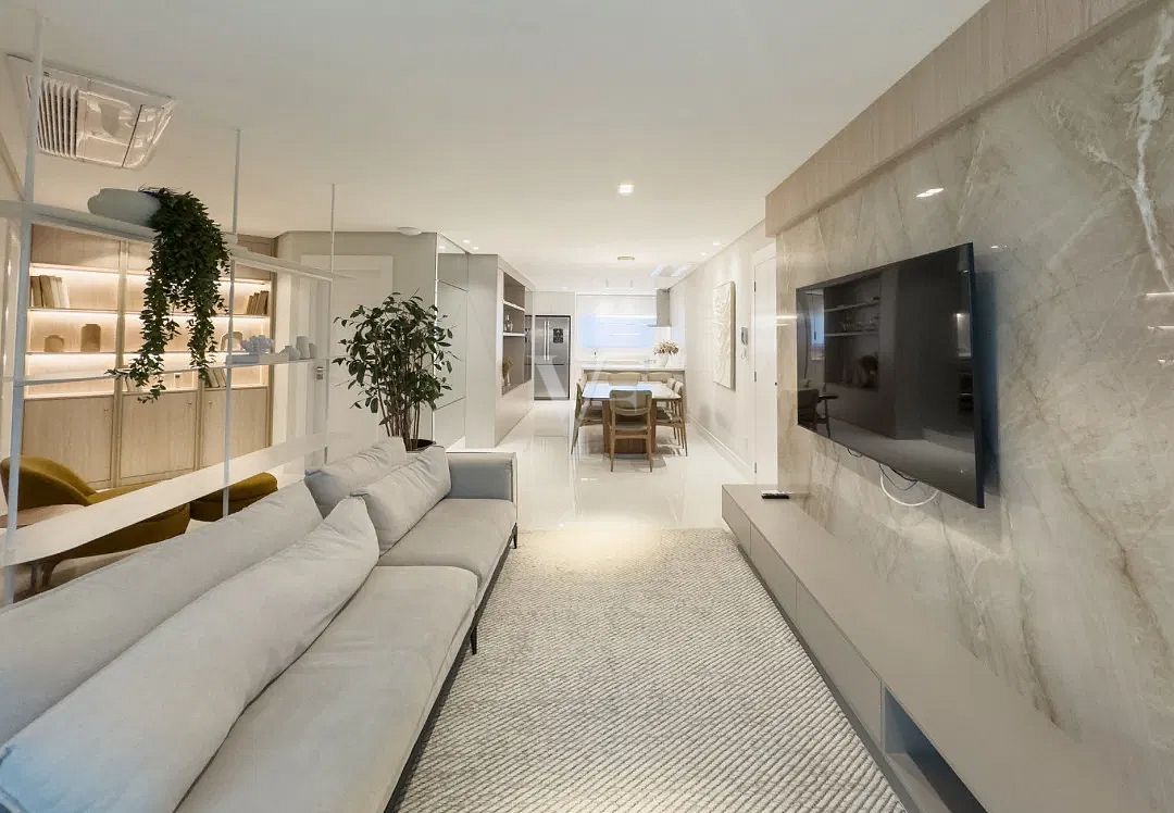 Com 138,64 m² de área privativa e 256,85 m² de área total, o Apartamento 1801 apresenta planta inteligente e distribuição equilibrada dos ambientes, privilegiando amplitude, luminosidade natural e integração.
