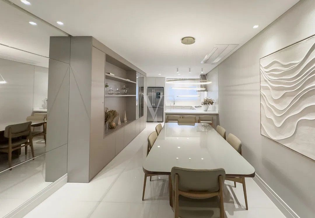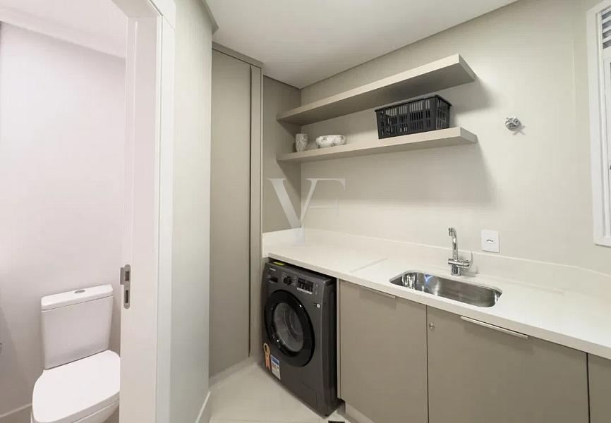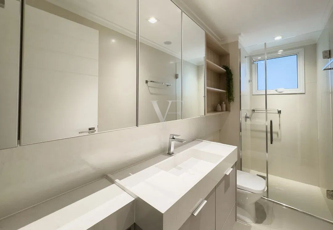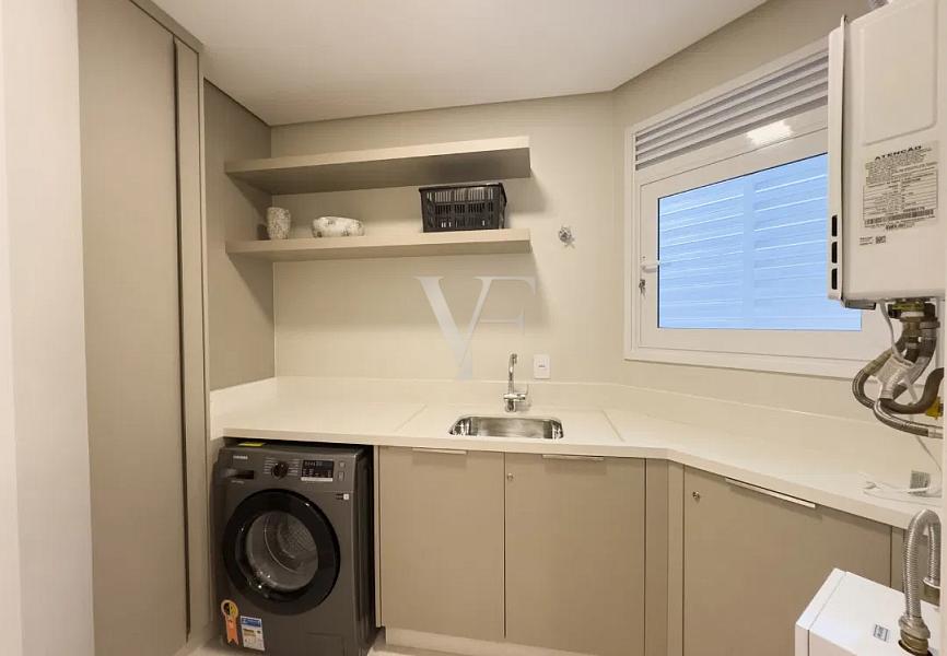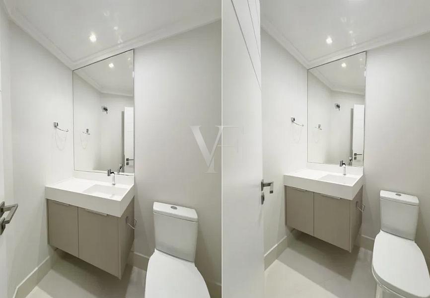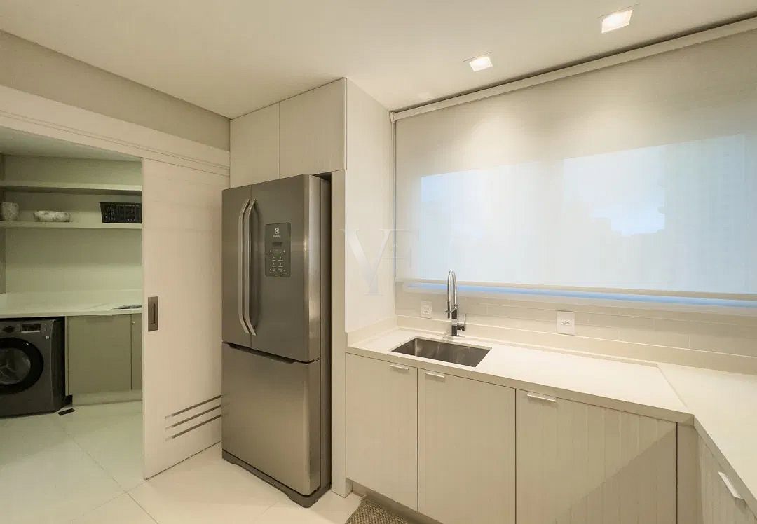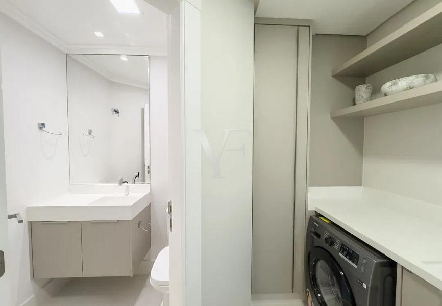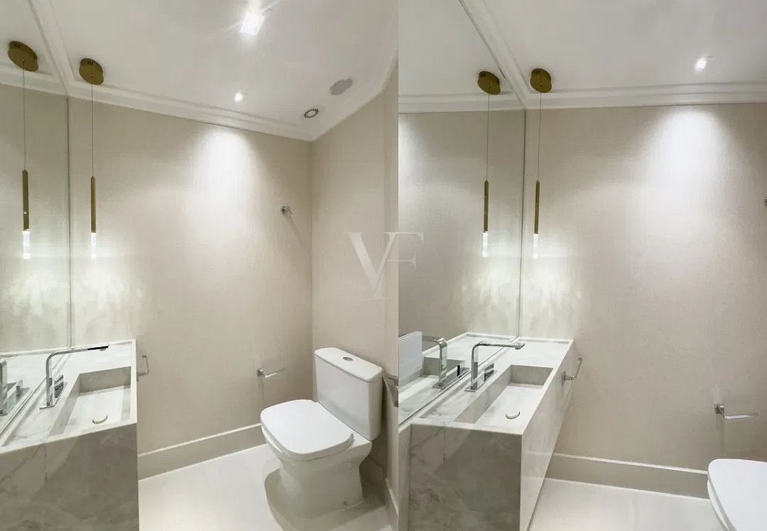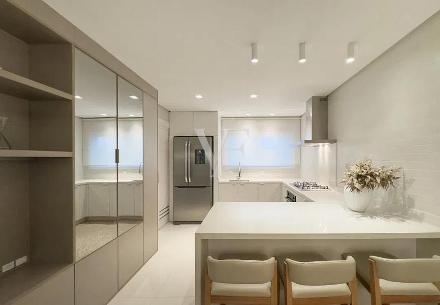 Na área íntima, três suítes garantem conforto e privacidade, com proporções generosas e excelente padrão construtivo. O imóvel conta ainda com lavabo, área de serviço independente e duas vagas de garagem.