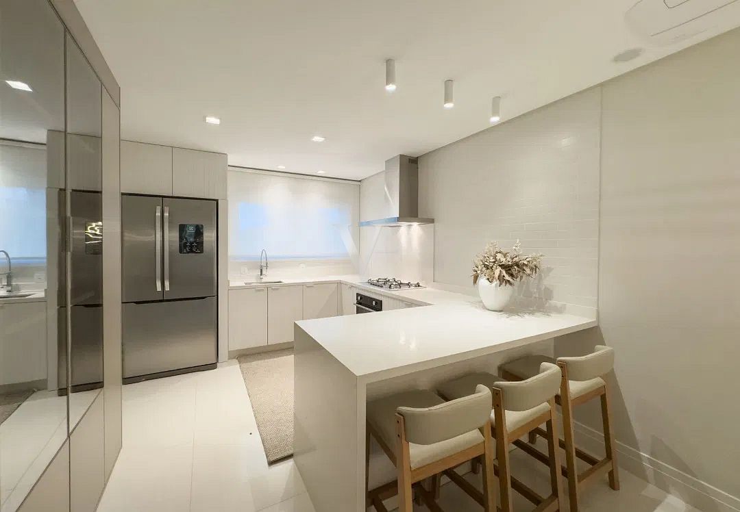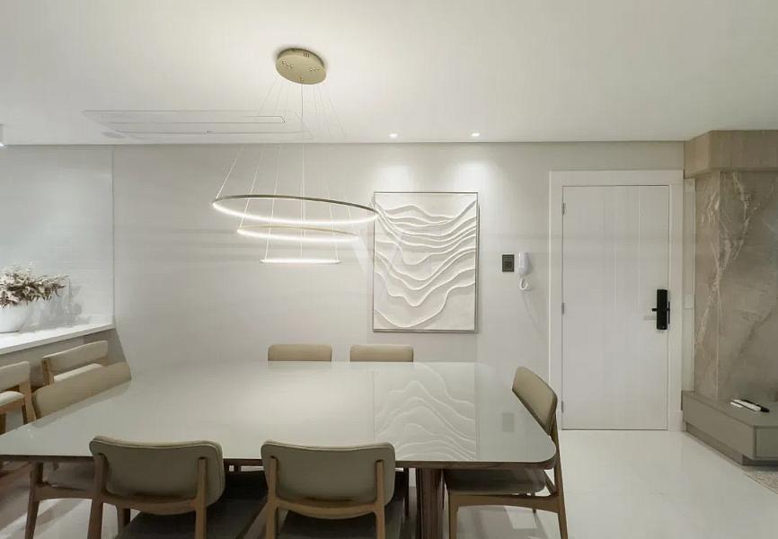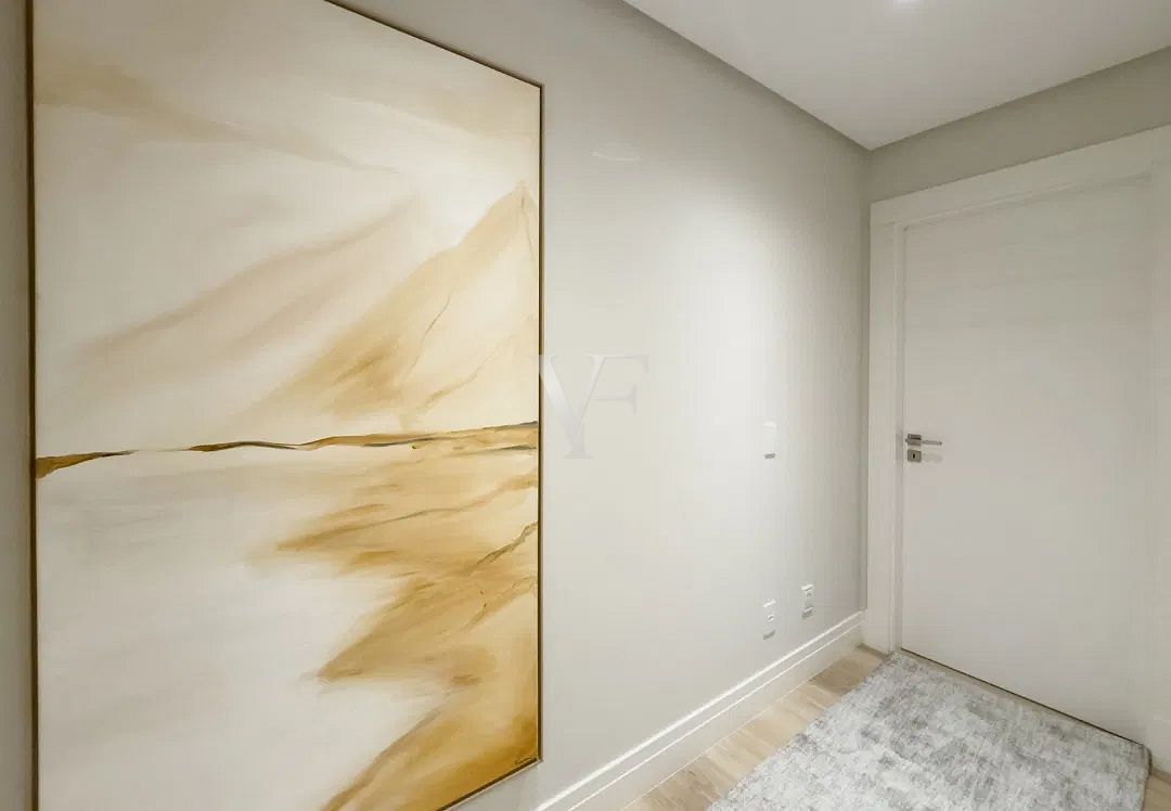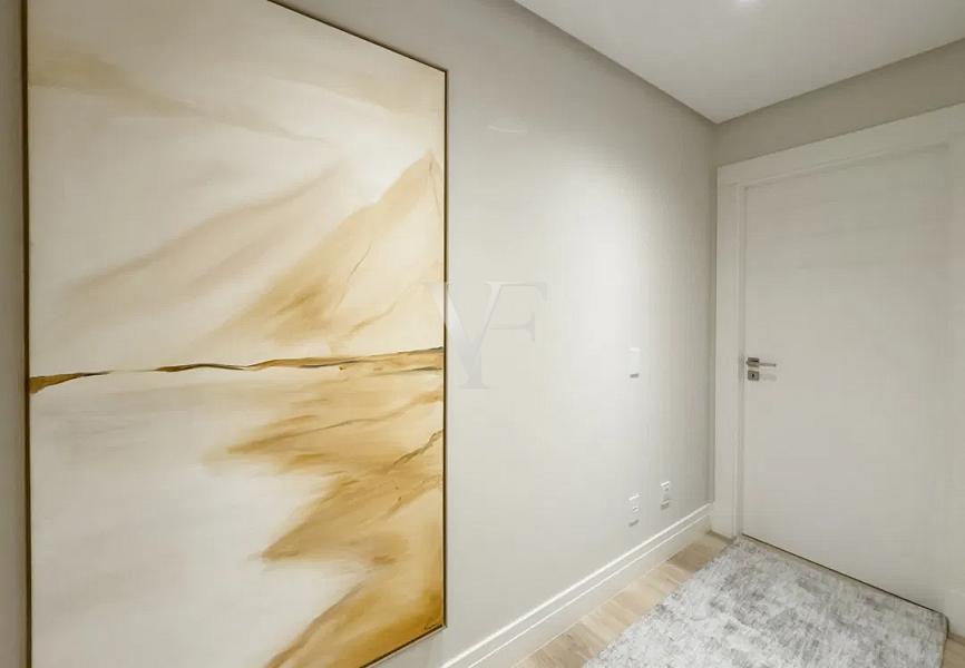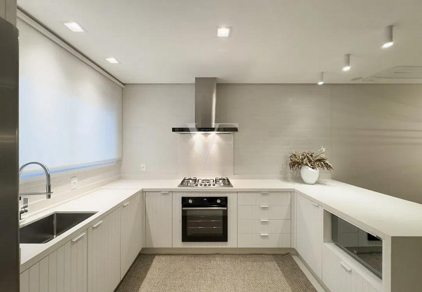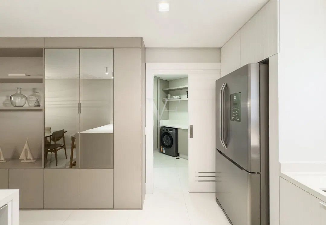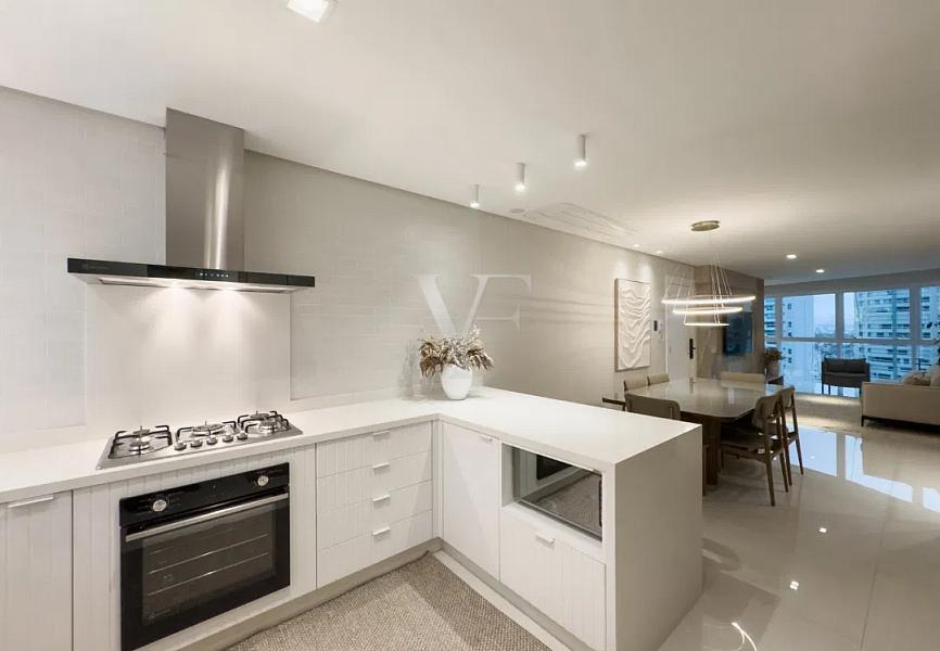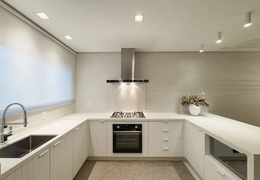 Na área íntima, três suítes garantem conforto e privacidade, com proporções generosas e excelente padrão construtivo. O imóvel conta ainda com lavabo, área de serviço independente e duas vagas de garagem.